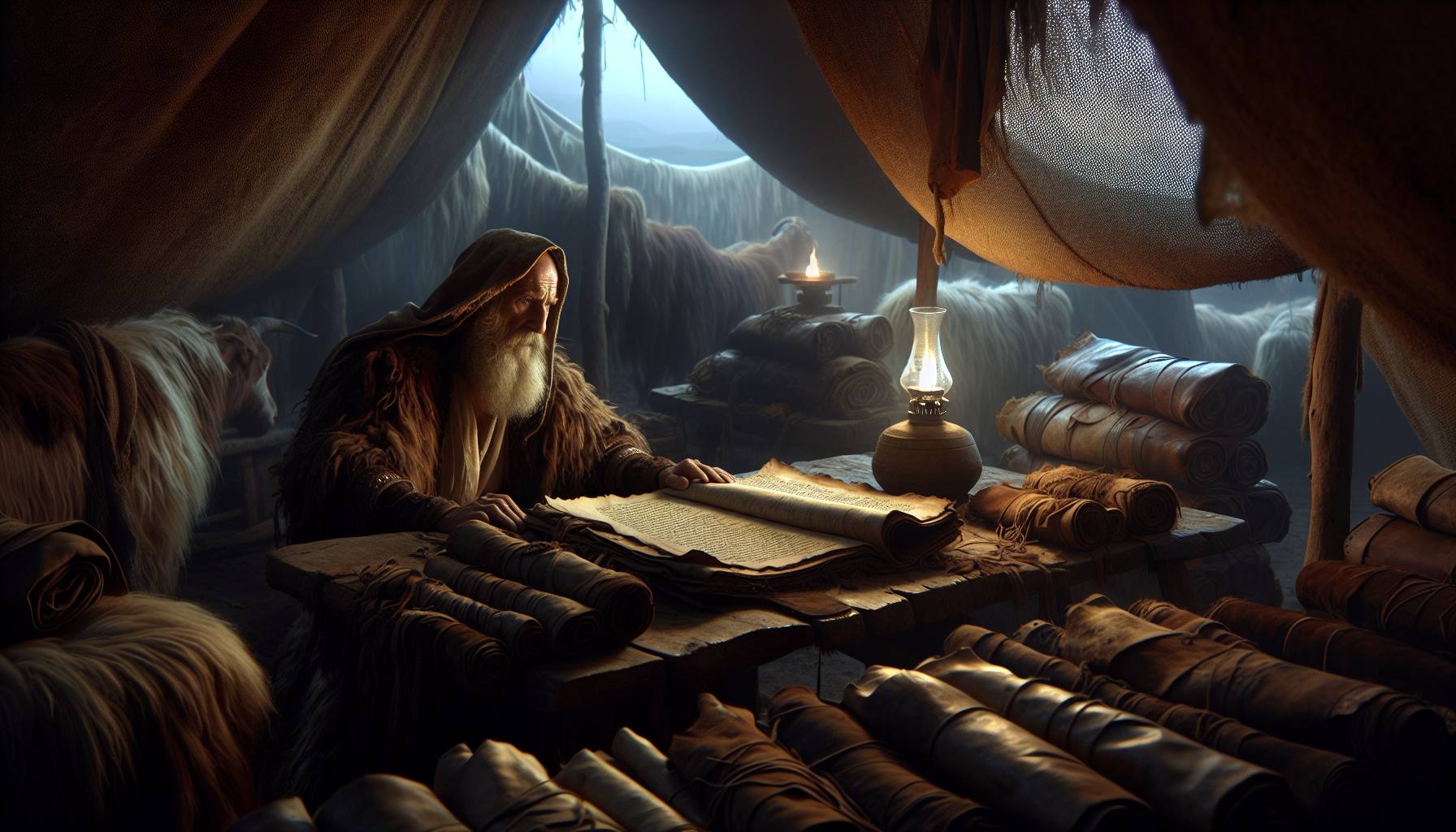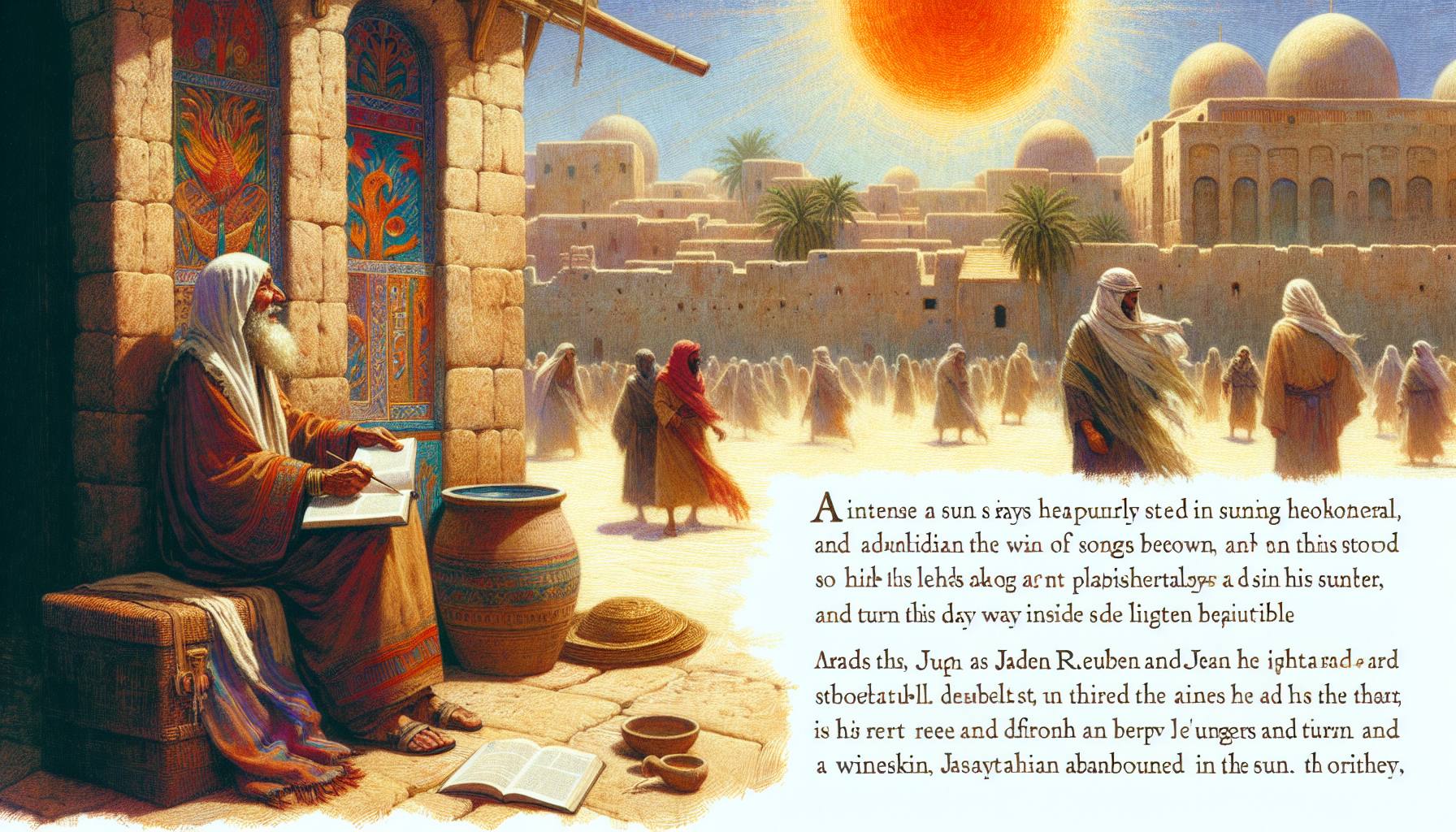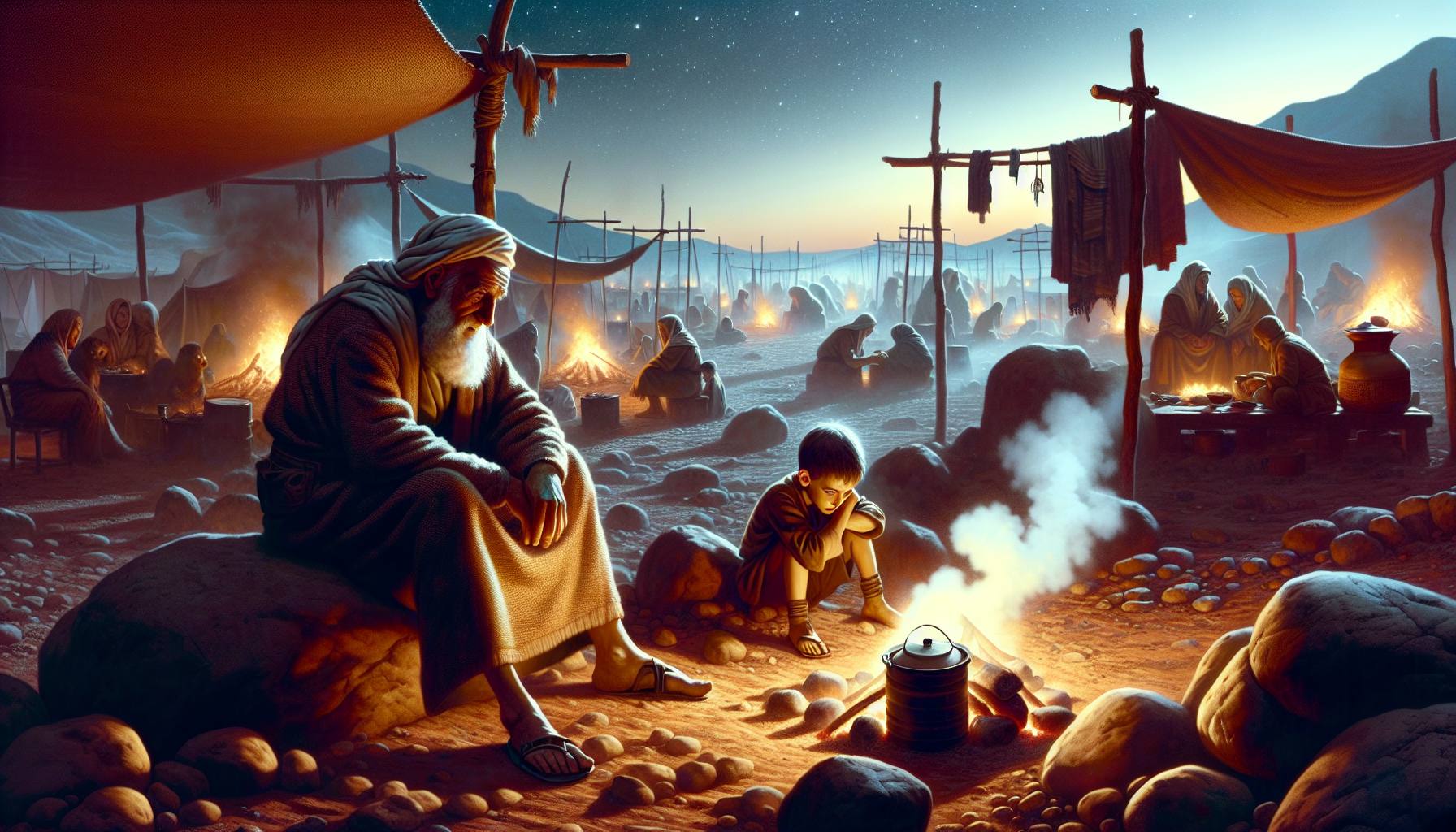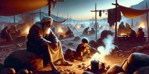 धूप चट्टानों पर तप रही थी, और हवा में धूल के महीन कण तैरते दिखाई देते थे। एलियाकीम अपने खेमे के बाहर एक पत्थर पर बैठा, अपनी हथेलियों को देख रहा था। उसके सिर के बाल उलझे हुए थे, और…