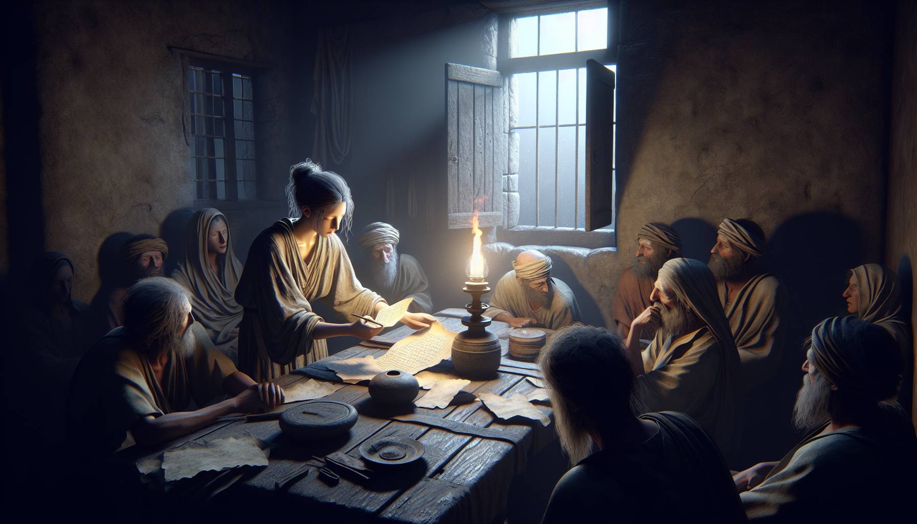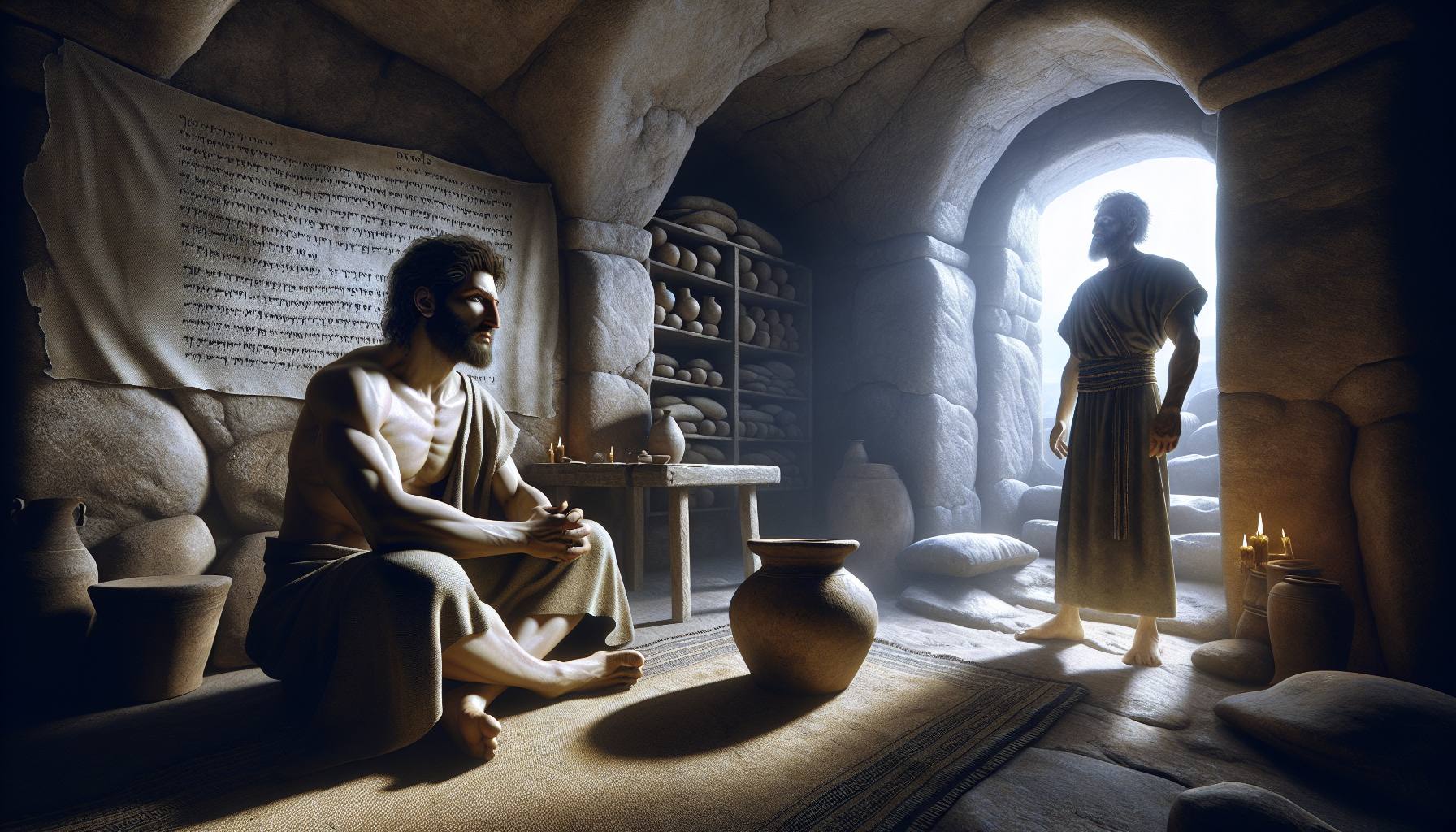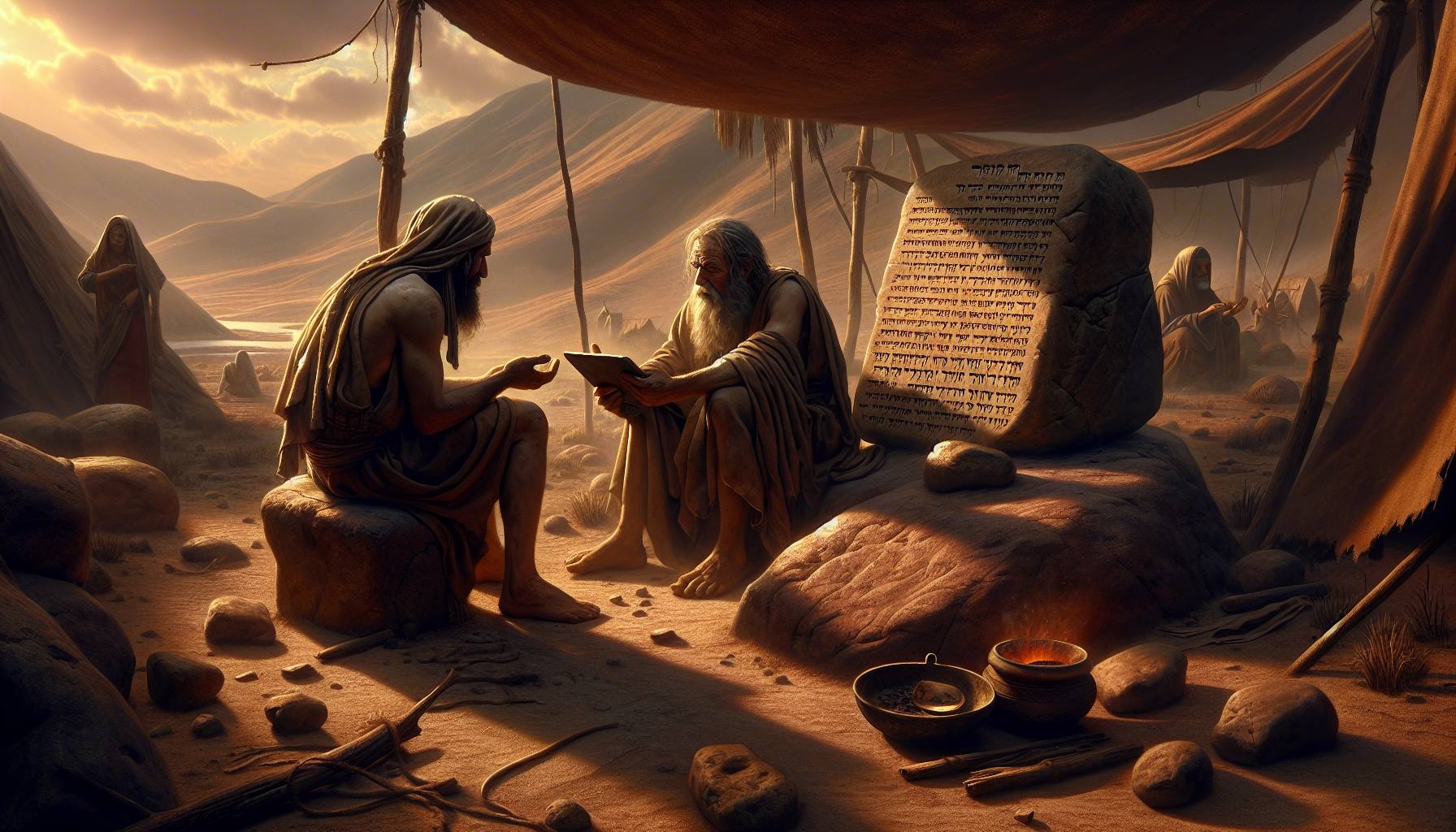धूप चट्टानों पर तप रही थी, और हवा में धूल के महीन कण तैरते दिखाई देते थे। एलियाकीम अपने खेमे के बाहर एक पत्थर पर बैठा, अपनी हथेलियों को देख रहा था। उसके सिर के बाल उलझे हुए थे, और…