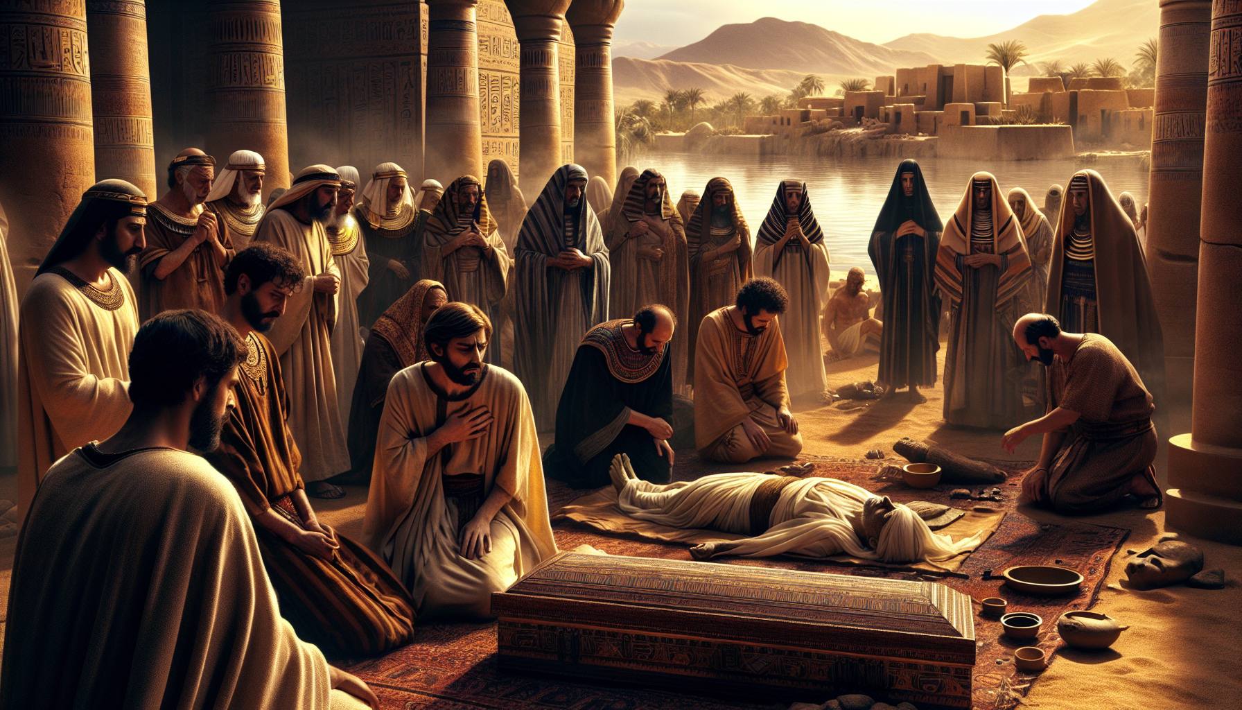 यूसुफ उस शव पर गिरकर रोया, अपने पिता के ठंडे माथे को छूकर। मिस्र की भरी धूप में भी उसे एक कंपकंपी सी लग रही थी। याकूब का शरीर, जो इतने वर्षों तक उसके लिए एक सहारा, एक स्मृति बना…