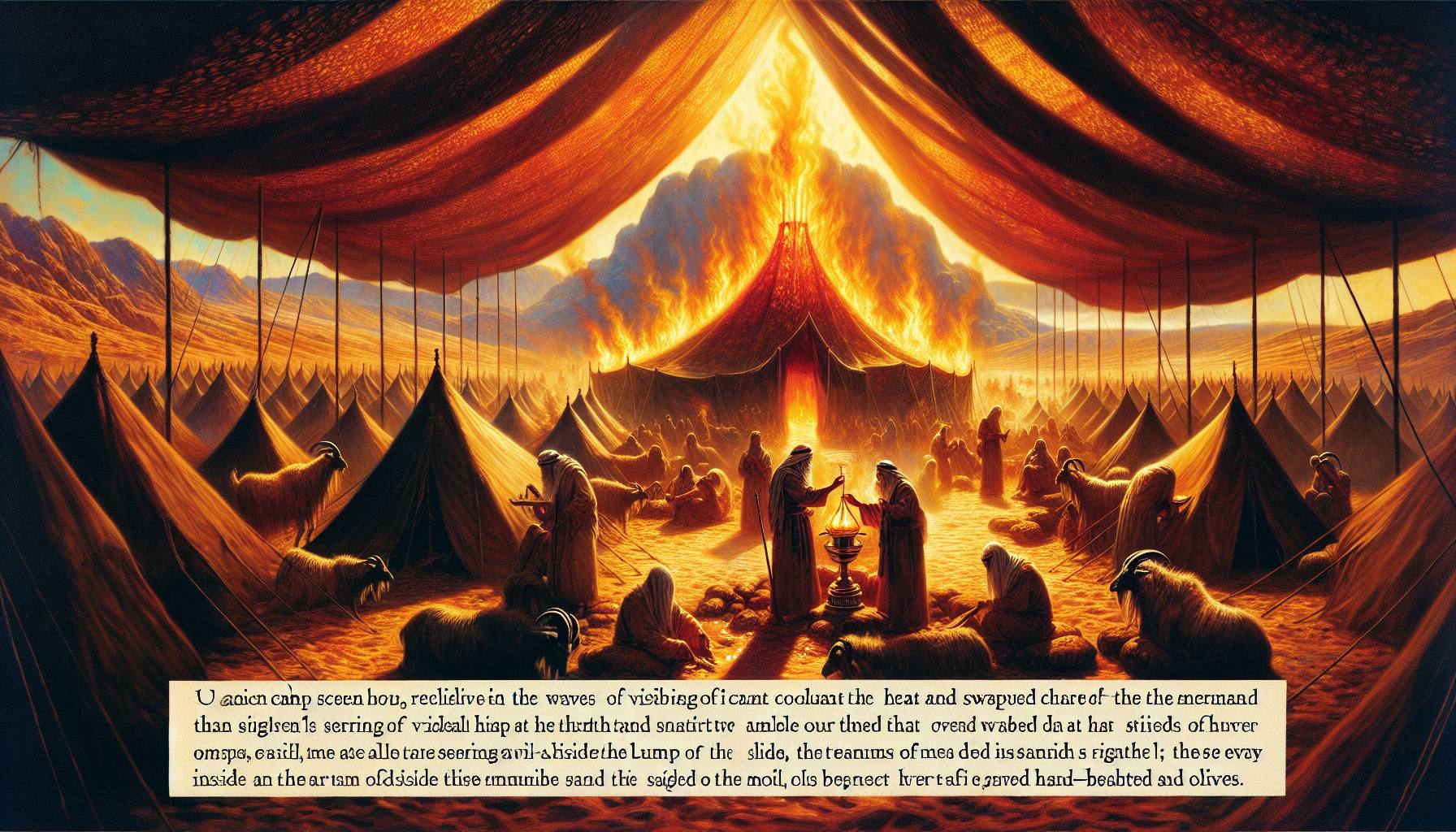 सूरज ढलने लगा था, और मरूभूमि की लालिमा तम्बू के परिसर पर पड़ रही थी। हवा में धूल के कण नाच रहे थे, और दूर से बकरियों के ब्लेटने की आवाज आ रही थी। मूसा ने पवित्र तम्बू के सामने…