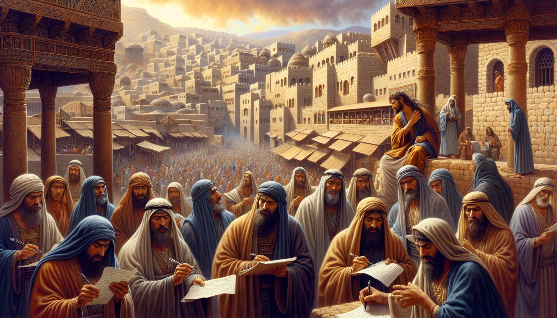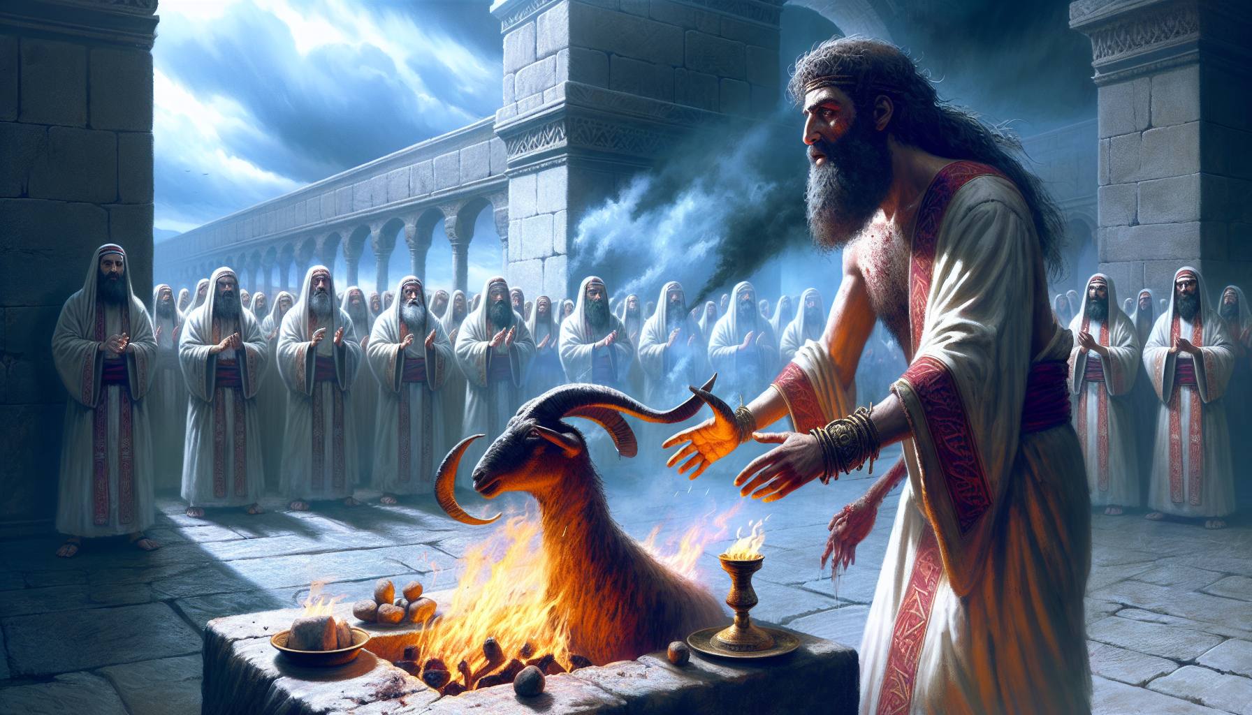 यरूशलेम की सड़कें उस गर्मी में तपती थीं, जैसे कोई अदृश्य आग नगर की नींव तक को भस्म करने पर तुली हो। हवा में धुआँ था, न कि युद्ध का, बल्कि मन्दिर से उठते हब्बे-हब्बे बलि-पशुओं के चमड़े के जलने…