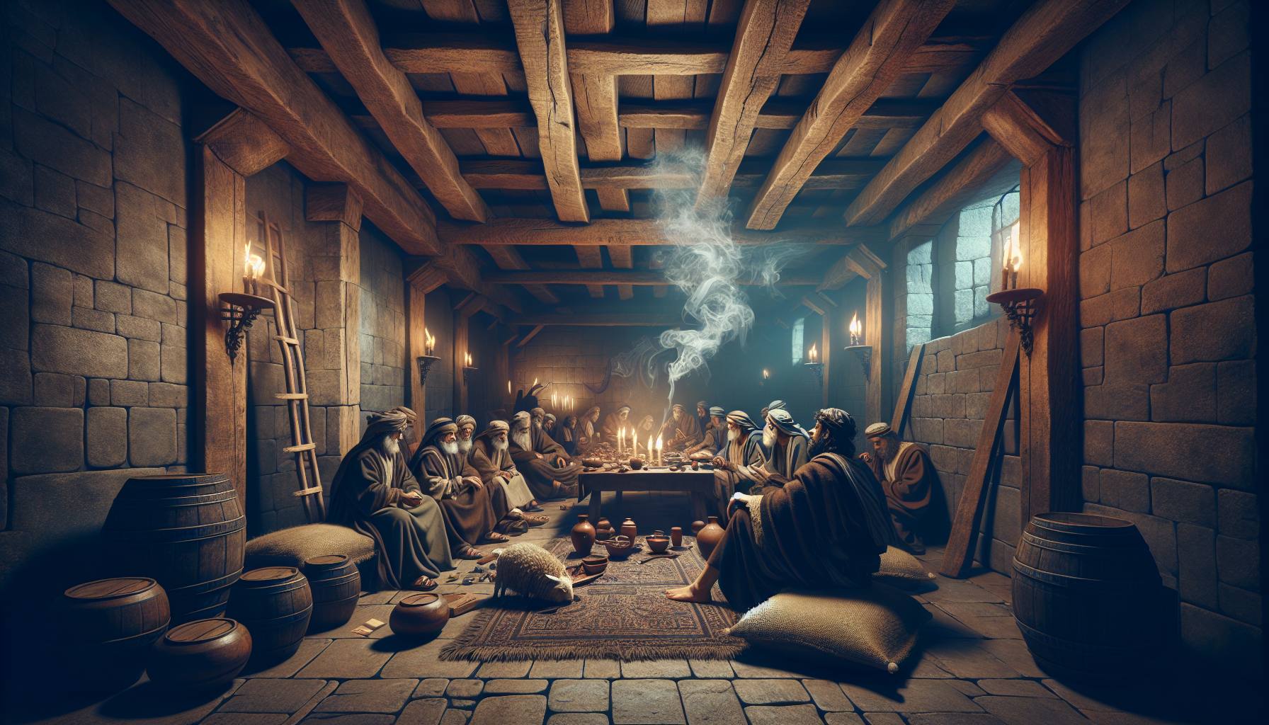 उस ऊपरी कक्ष में हवा भारी थी। दिन भर की बातें, उस अजीब सी गूँजती चेतावनी कि ‘तुम में से एक मुझे पकड़वाएगा,’ ने सबके मन को एक पत्थर की तरह दबोच रखा था। दीवार पर तेल के दीपक की…