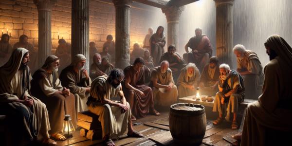 कफरनहुम की गलियों में दोपहर की धूप तिरछी पड़ रही थी। पत्थरों के घरों से उठती गर्मी की लहर हवा में तैर रही थी। यीशु, थके हुए कदमों से चलते हुए, एक बरगद के पेड़ की छाया में बैठ गए।…