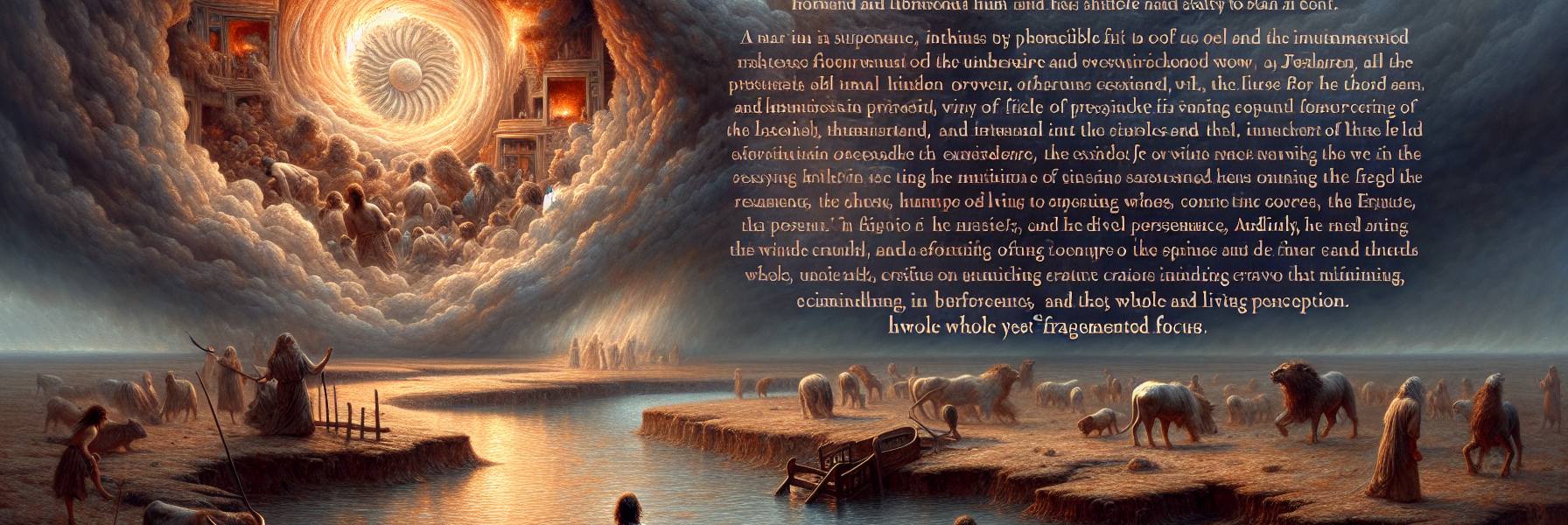 वह प्रकाश धीरे-धीरे एक रूप लेने लगा। एक विशालकाय सिंहासन दिखा, और उस पर बैठे एक तेजोमय पुरुष के चारों ओर जीवंत प्राणी मंडरा रहे थे। उनके चेहरे—एक मनुष्य का, एक सिंह का, एक बैल का, एक चील का—ऐसे लग रहे थे मानो सारी सृष्टि का सार एक साथ प्रकट हो रहा हो। पंखों की फड़फड़ाहट से हवा काँप उठी।