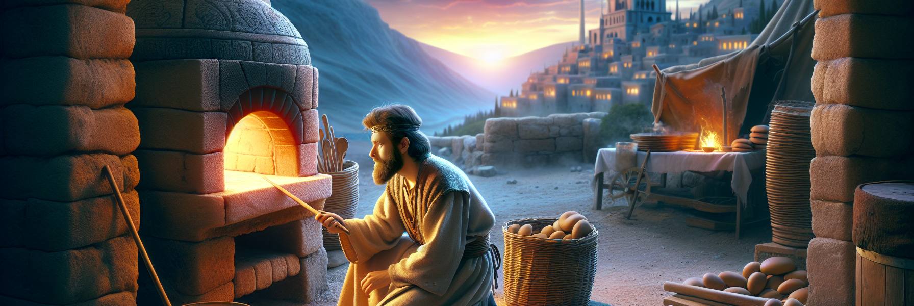 बाजार में हलवाई की दुकान में आग तेज हो रही थी। आटा गूँथने वाला बेचारा यह नहीं जानता था कि आग कब शांत होनी है। ठीक वैसे ही जैसे राज्य के अधिकारी – मनाहेम के दरबारी – नहीं जानते थे कि उनकी कुटिलताओं की आग कब प्रभु के क्रोध को भड़का देगी।