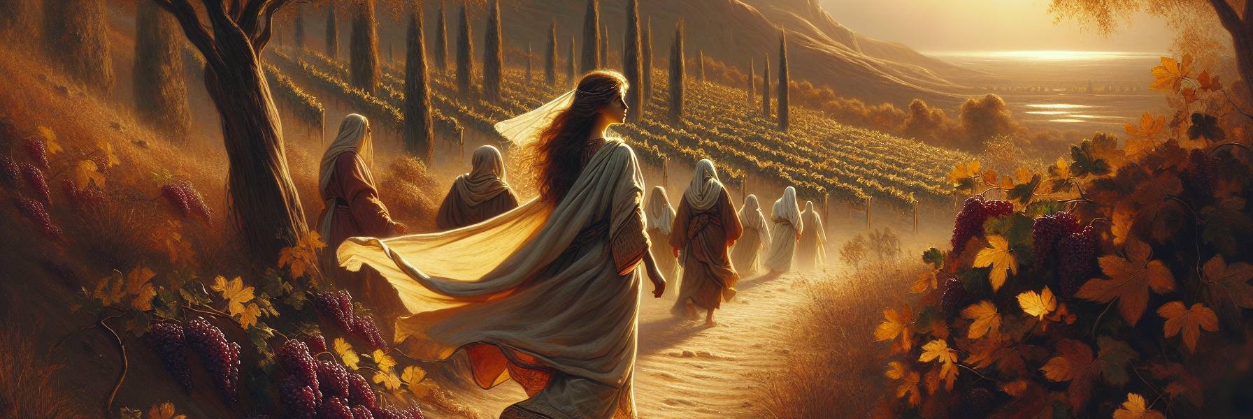 वह दिन ढल रहा था, और बाग़ की हवा में ख़ुमार सा छाया हुआ था। श्लोमित अपनी छोटी सी कुटिया के द्वार पर बैठी, उंगलियों से जैतून के पेड़ की एक टहनी को सहलाते हुए, उसने आने वाले कदमों की आहट सुनी। वह आहट उसके लिए संगीत थी – धीमी, दृढ़, और जानी-पहचानी। सुलेमान आ रहा था।