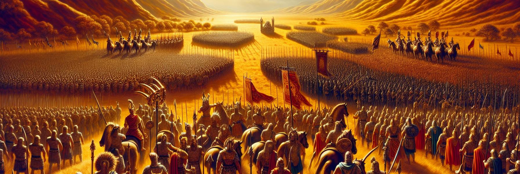 दोनों सेनाएँ अब आमने-सामने थीं। हवा में तनाव था, जैसे बरसात से पहले का सन्नाटा। तभी अबीजा ने फैसला किया। वह सेना के सामने एक ऊँची चट्टान पर चढ़ा। उसकी आवाज़ हवा में फैलनी थी, दो लाख दुश्मन सैनिकों तक पहुँचनी थी। उसने अपना हाथ उठाया, और चारों ओर सन्नाटा छा गया।