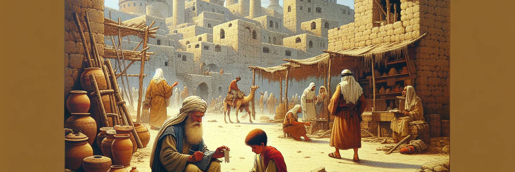 वह नहर के किनारे बैठा था, और पानी में उतरती शाम का सूरज लहरों पर सोने की काई सा बिछा रहा था। हवा में खजूर के पत्तों की सरसराहट थी, और दूर से किसी मदिरालय की झनझनाहट आ रही थी। पर उसकी आँखें उन लहरों में नहीं, कहीं बहुत दूर, फिरात के उन मैदानों में थीं जहाँ से वह आया था। उसके हाथ में एक फटा-पुराना चर्मपत्र था, जिसके कोने पानी और समय से कट चुके थे।