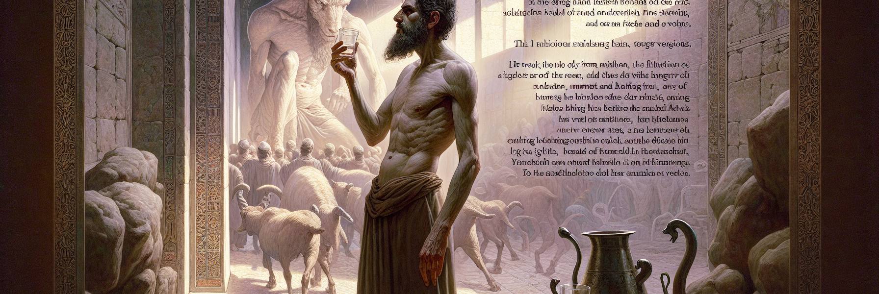 पहले तो लगा जैसे सूर्य की किरणों का भ्रम है। फिर आकृति स्पष्ट होने लगी। एक पुरुष, पर ऐसा पुरुष जैसा उसने कभी न देखा हो। उसका वस्त्र बत्तीसी सन का था, जो टखनों तक लहरा रहा था, और कमर शुद्ध सोने की पट्टिका से कसी हुई थी। शरीर पीतल जैसा चमकदार, मानो अग्नि में तपा हुआ हो। उसके चेहरे का तेज बिजली की चमक सा था, आँखें जलती हुई मशालें। बाँहें और पैर चमकते पीतल के स्तंभों जैसे, और जब वह बोला, तो उसकी आवाज़ बहुत से लोगों के शोर की तरह गूंजी—एक गर्जन जो हड्डियों में समा जाता है।