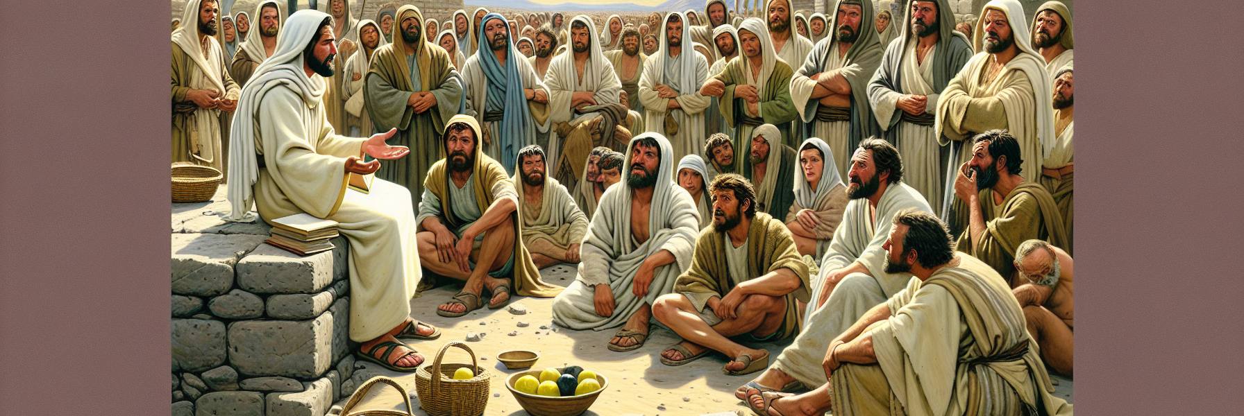यीशु ने चारों ओर नज़र दौड़ाई। उनकी आँखों में कोमलता थी, लेकिन गहराई में एक ऐसा बल था जो सीधे हृदय तक पहुँचता था। उन्होंने एक गहरी साँस ली और बोलना शुरू किया, उनकी आवाज़ शाम की शांति में घुलती हुई।