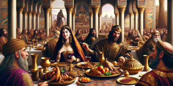 (यह कहानी एस्तेर की पुस्तक के सातवें अध्याय पर आधारित है। सभी पात्र और घटनाएँ बाइबिल के अनुरूप हैं, किन्तु उनके भावों, वातावरण और संवादों को विस्तार से चित्रित किया गया है।) शाही भोजन-कक्ष में हवा तैलीय और भारी लग…