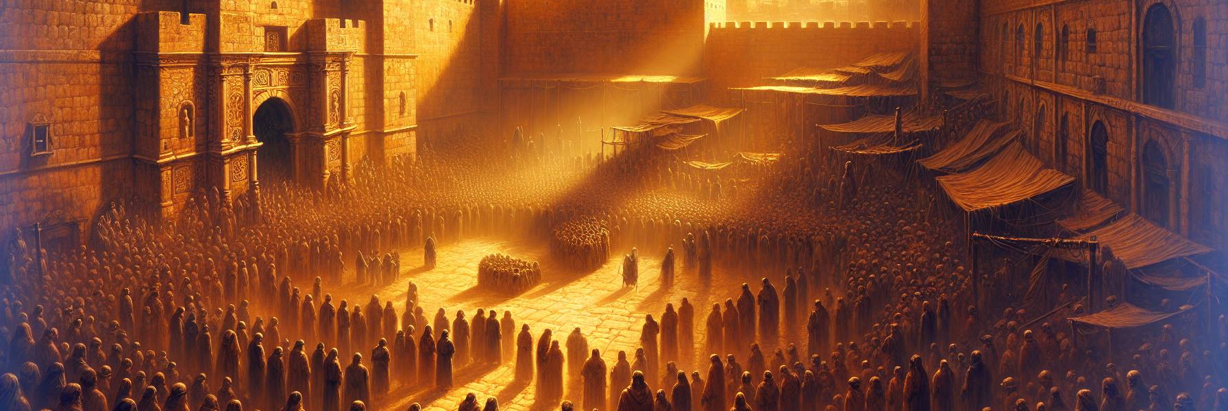 दोपहर ढलने लगी थी। सूरज पश्चिम की दीवारों पर सुनहरी रोशनी फैला रहा था। सभा समाप्त हो चुकी थी। लोग चले जा रहे थे, पर उनके कदमों में एक नई दृढ़ता थी। चेहरों पर थकान थी, पर संतोष भी था। एक स्त्री अपने छोटे बेटे का हाथ पकड़े हुए थी। बच्चा बोला, “माँ, हम अब सब्त के दिन बाज़ार नहीं जाएँगे क्या?” स्त्री ने मुस्कुराते हुए कहा, “नहीं, बेटा। उस दिन हम विश्राम करेंगे। हम प्रार्थना करेंगे। तुझे कहानियाँ सुनाऊँगी – हमारे पूर्वजों की कहानियाँ।” बच्चे की आँखों में चमक आ गई।