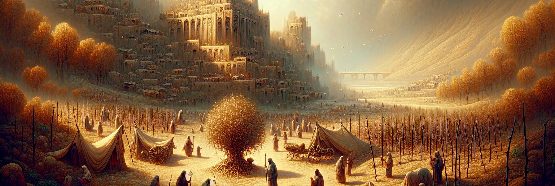 मिसपा का किला सूरज की तिरछी किरणों में एक उदास सुनहराई लिए खड़ा था। यह वह स्थान था जहाँ बाबुल के हाकिम नबूजरदान ने गदल्याह को अधिकार सौंपा था—यहूदा के बचे-खुचे लोगों की बागडोर। हवा में धूल और हार का गंध था। किले के भीतर का आँगन, जहाँ अंगूर की एक बेल दीवार पर चढ़ी थी, उस दिन सन्नाटे से भरा हुआ प्रतीत होता था।