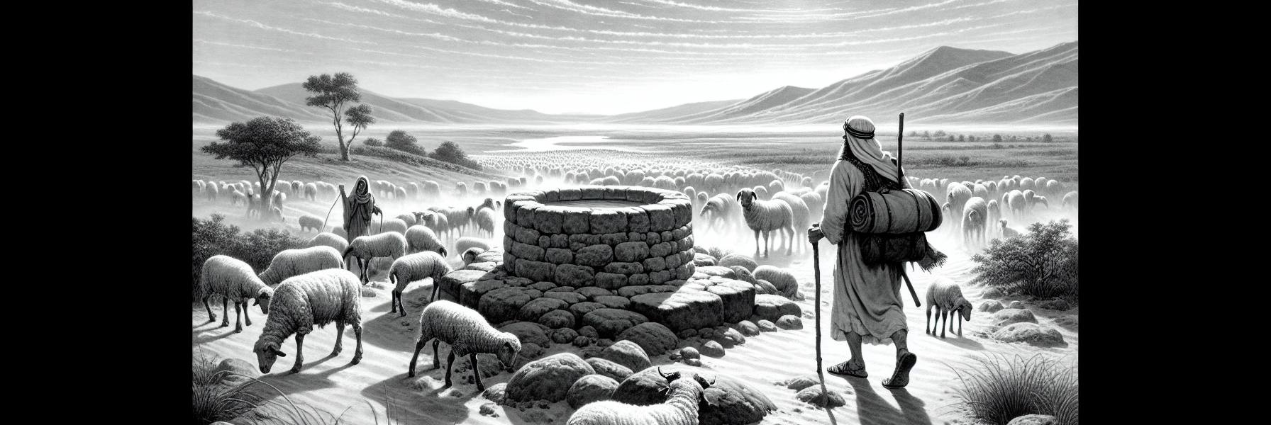 यह कहानी उस समय की है जब याकूब अपने भाई एसाव के क्रोध से बचकर दूर, अपने नाना लाबान के घर की ओर जा रहा था। वह बेरशेबा से हरान के लिए निकला था, और रास्ता सुनसान और लंबा था। धूल उसके चेहरे पर जम गई थी, और उसके पैरों में चुभन सी हो रही थी। आखिरकार, हरान के पास के मैदानों में पहुँचकर उसने दूर से देखा—एक कुआँ, और उसके आसपास तीन झुंड की भेड़ें बैठी थीं। सूरज ढलने को था, और चरवाहे इकट्ठा हो रहे थे।