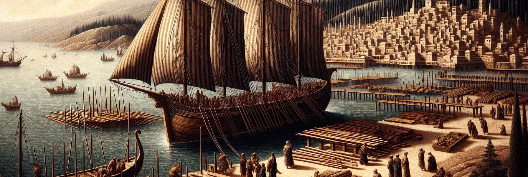 तूर की नींव, वह बताता, पहाड़ों की गोद से आई थी। हेर्मोन पर्वत से उतरे बशान के देवदार के लट्ठे, सेनिर के घने जंगलों से कटकर आई दृढ़ लकढ़ी, बड़े-बड़े बेड़ों में बाँधकर लाई जाती, और फिर यहाँ के कारीगर, जिनकी कला पर समुद्र देवता स्वयं मेहरबान होते, उन लट्ठों को जोड़-तोड़कर ऐसे जहाज बनाते जो समुद्र के राक्षसों को भी मात दे सकते थे। मस्तूल के लिए लबानोन के देवदार, खेवने के लिए बाशान की चीड़, तख्तों को जोड़ने के लिए कित्तीम के द्वीपों से आया सन्नोबर का लचीला लकड़ी का गोंद – सब कुछ चुना हुआ, उत्तम।
