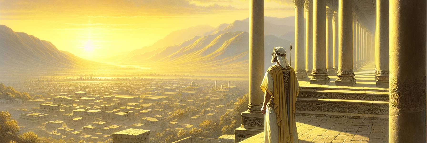एक दिन, जब यरूशलेम में वसंत की हवा जैतून के बागों से होकर महक रही थी, सुलैमान महल की छत पर टहल रहा था। उसकी नज़र उत्तर की ओर, लबानोन के those ऊँचे-ऊँचे पहाड़ों पर पड़ी, जो दूर से नीले और हरे रंग के मिश्रण जैसे दिखाई दे रहे थे। और फिर उसकी यादों में वह दृश्य तैरने लगा – उसका पिता दाऊद, बूढ़ा और थका हुआ, उससे कह रहा था, “सुन, मेरे पुत्र। मेरे मन में था कि मैं हमारे परमेश्वर यहोवा के नाम के लिये एक भवन बनाऊँ। परन्तु यहोवा का वचन मेरे पास यह कहता हुआ आया कि तू बहुत लहू बहाया है और बड़े-बड़े युद्ध किए हैं… वह भवन तेरा पुत्र बनाएगा।”