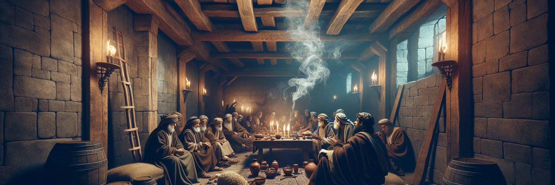 उस ऊपरी कक्ष में हवा भारी थी। दिन भर की बातें, उस अजीब सी गूँजती चेतावनी कि ‘तुम में से एक मुझे पकड़वाएगा,’ ने सबके मन को एक पत्थर की तरह दबोच रखा था। दीवार पर तेल के दीपक की लौ हल्की हवा से डगमगाती, और उसकी छायाएँ उनके चेहरों पर नाचतीं, जो भविष्य के एक काले, अनजाने गड्ढे की ओर देख रहे थे।