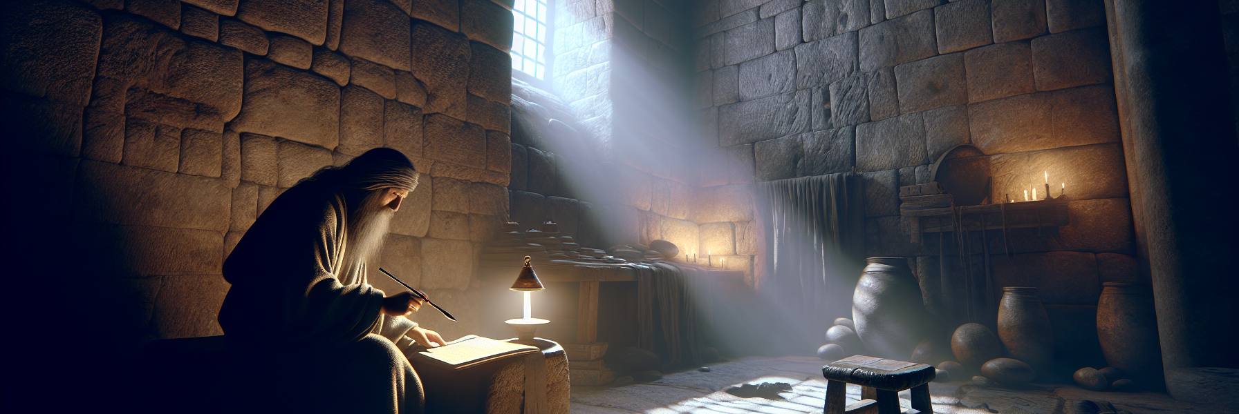 यरूशलेम की गर्मियों की वह दोपहर बेहद स्तब्ध थी। हवा तक जैसे थम गई थी, और सूरज शहर की सफेद पत्थर की दीवारों पर ऐसे पड़ रहा था मानो उन्हें गलाने का निश्चय किया हो। एलियाब अपनी छोटी सी कुटिया के अंधेरे कोने में बैठा था, लेकिन उसका मन उस शरीर से कहीं ज्यादा भारी था। वह भार एक रहस्य था, एक ऐसा रहस्य जो उसके अपने हृदय में दबा था और जिसने उसकी नींद चुरा ली थी।